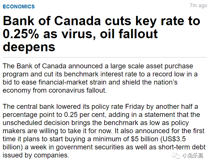 今天,BOC再一次紧急降息50个基点到0.25,同时推出了加拿大版QE。